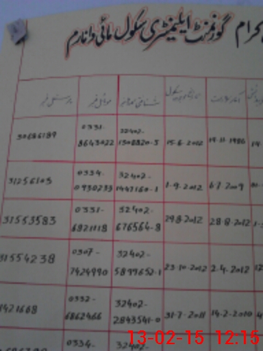 | District: RAJANPUR | Tehsil: JAMPUR | Markaz: DAJAL - MALE | Level: Middle | |