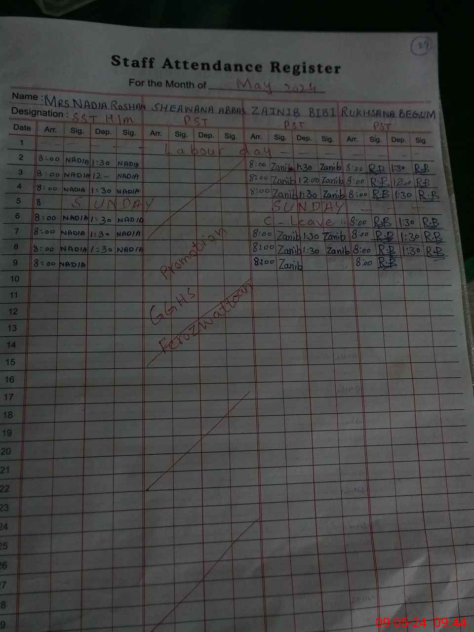 | Name: NA**** RO**** Designation: (School Headmaster's/Headmistress's) SST (General) Phone/Cell Number: 03**** |