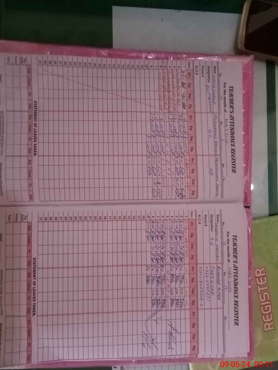 | CNIC | Full Name | Designation | R/C | Absence During Last Calender Month |