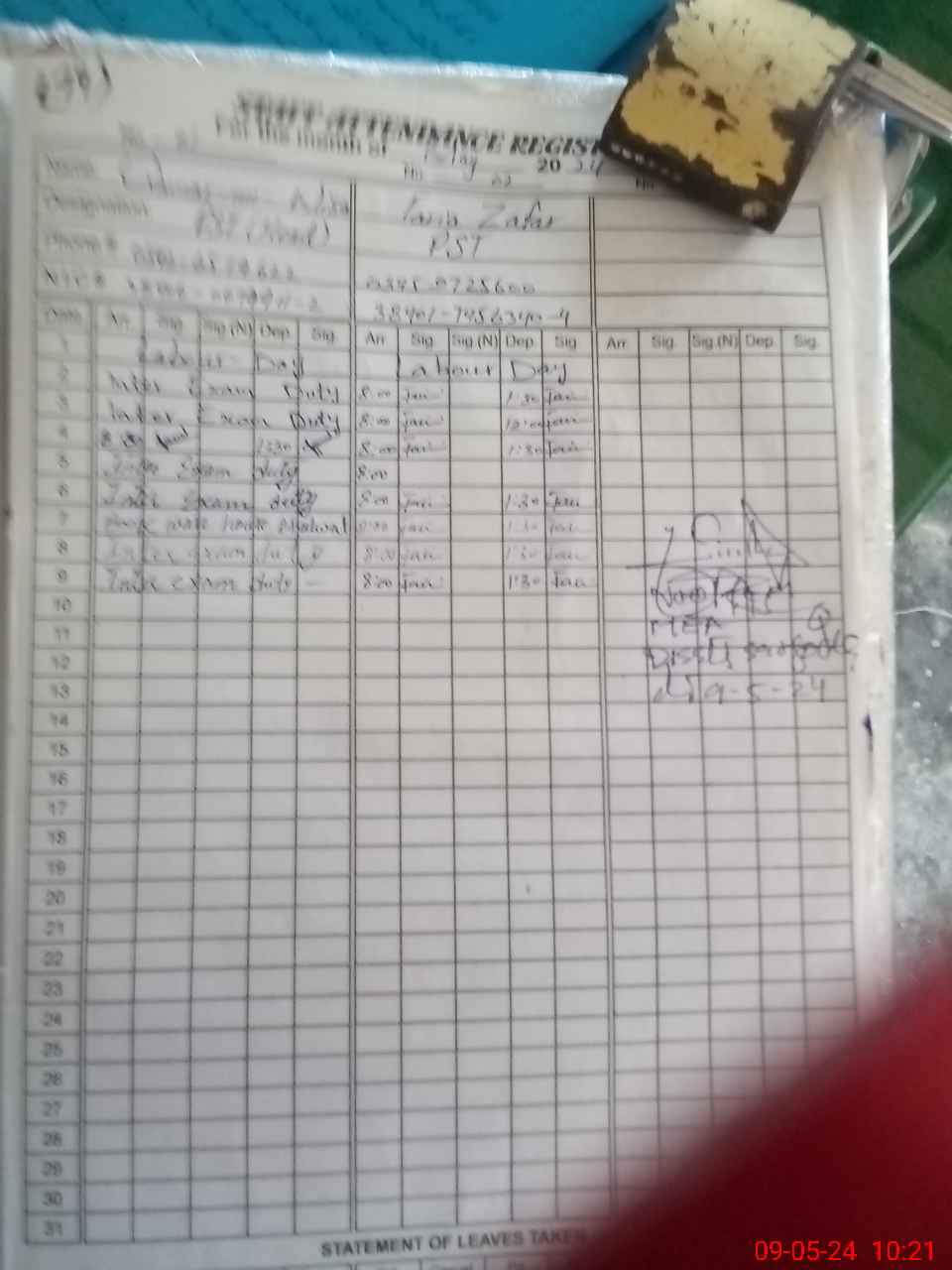 | 38**** | Qa**** UnNi**** | PST | Regular | 0 | 0 | 0 | 0 | 0 | 0 | 0 | 0 | 0 | Exam Duty |