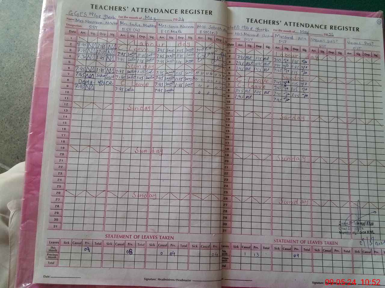 | CNIC | Full Name | Designation | R/C | Absence During Last Calender Month |
