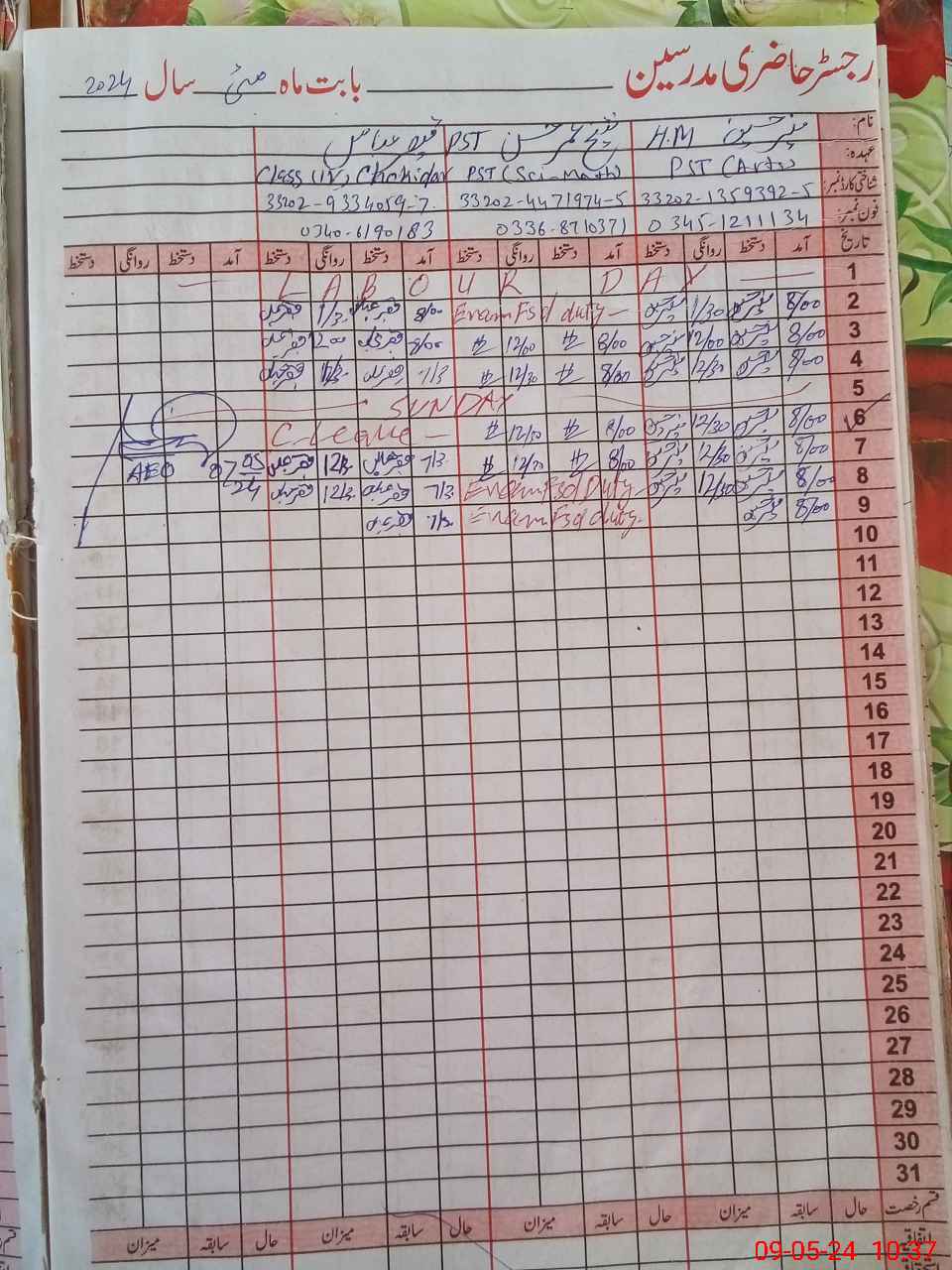 | Name: SA**** UL**** KH**** Designation: (School Headmaster's/Headmistress's) PST Phone/Cell Number: 03**** |