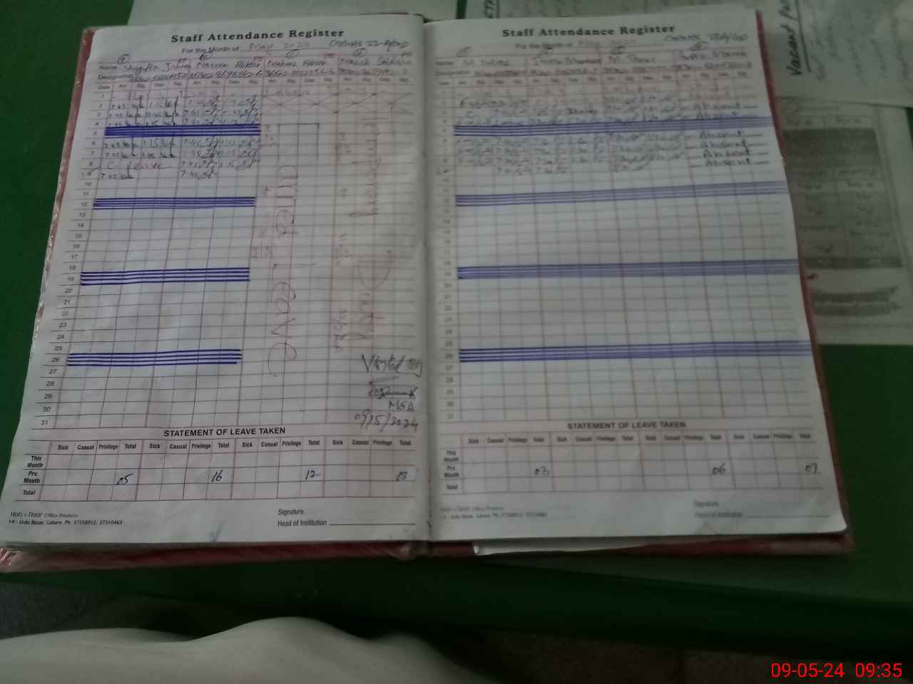 | 35**** | Na**** Si**** | 1 | 4 | 0 | 0 | 0 | 0 | 0 | 0 | 0 | 4 | Absent (Un-Authorized) | |