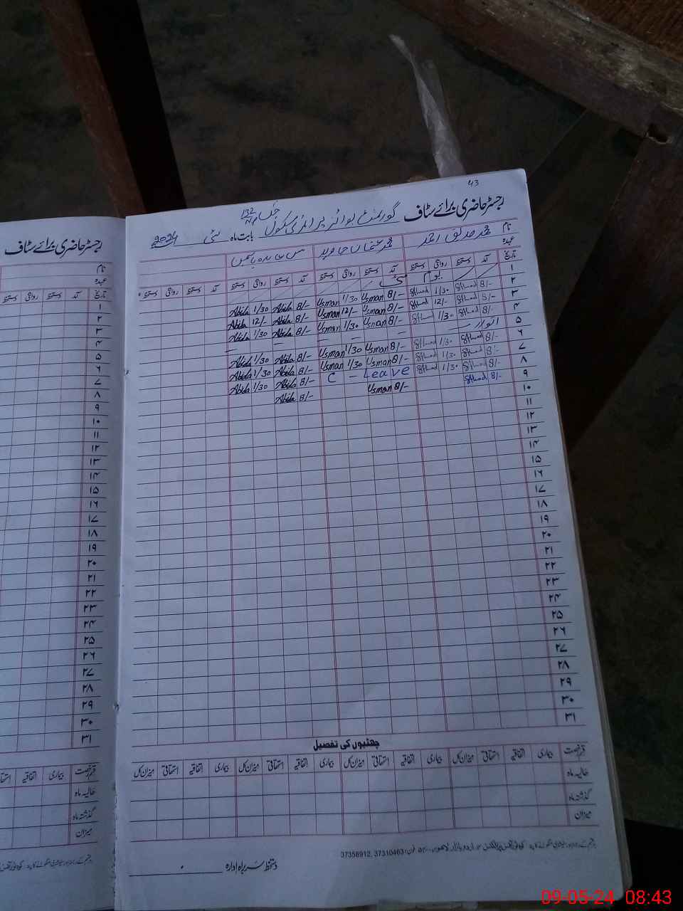 | CNIC | Full Name | Designation | R/C | Absence During Last Calender Month |