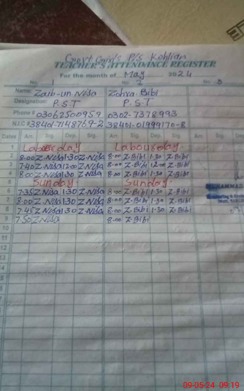 | CNIC | Full Name | Designation | R/C | Absence During Last Calender Month |