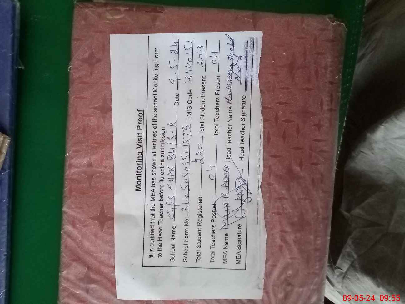 | Certified that this School was Inspected by the Undersigned MEA/DMO Today and the Information Stated Above is as Per Record. | |||||