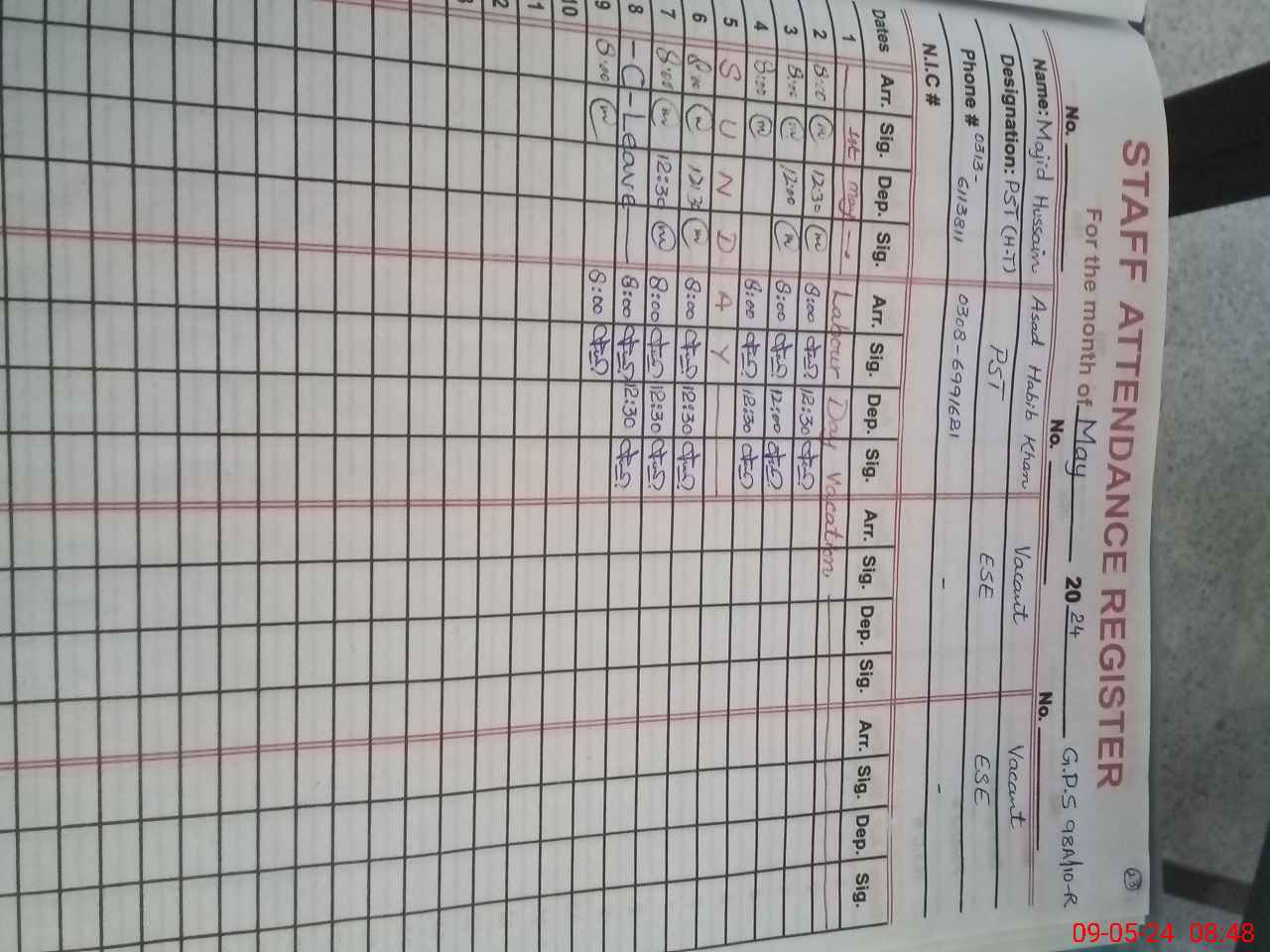 | Name: SH**** RA**** Designation: (School Headmaster's/Headmistress's) PST Phone/Cell Number: 03**** |
