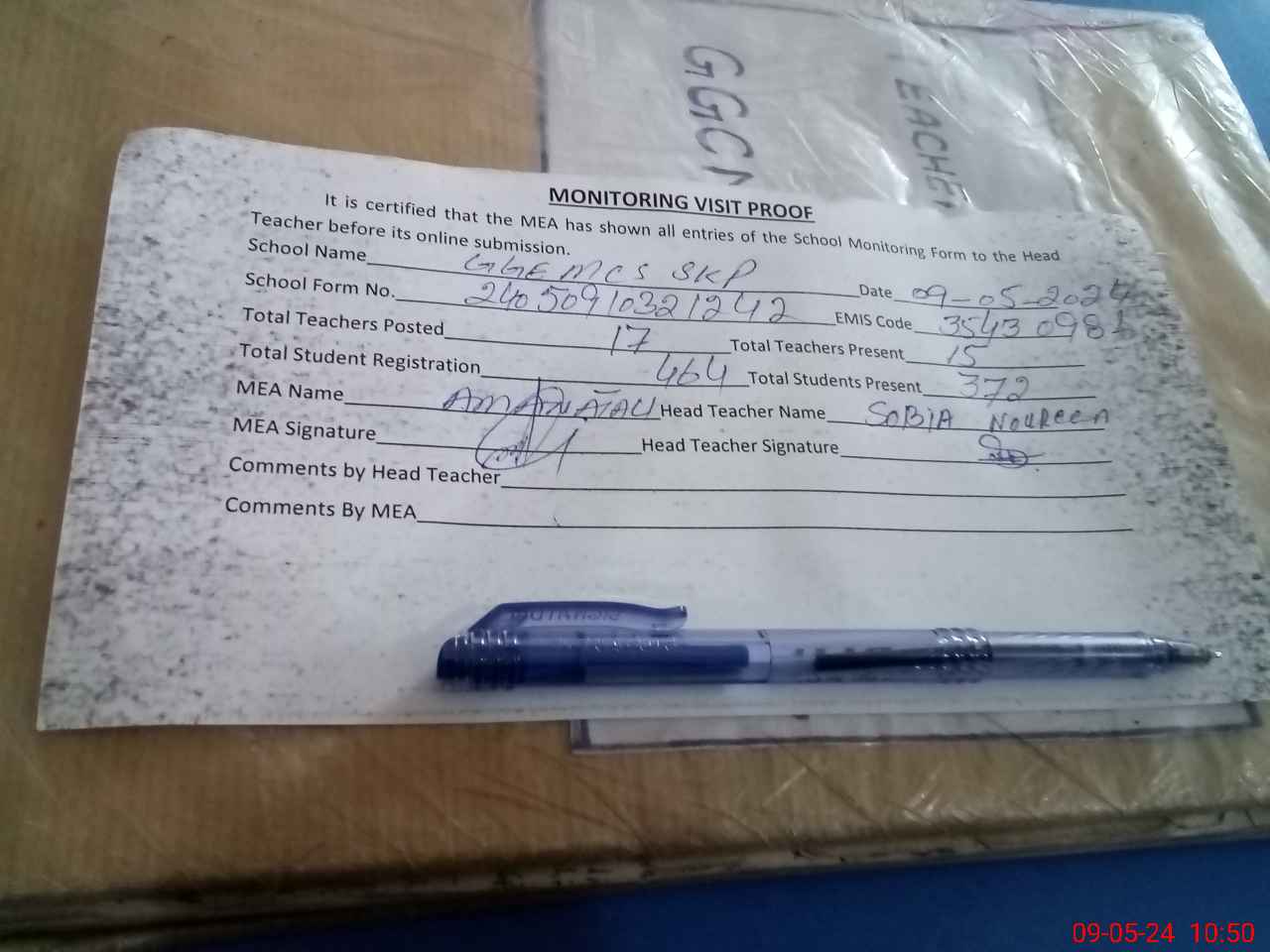 | Attendance Register | Head Teacher | MEA with School | Visit Proof |
