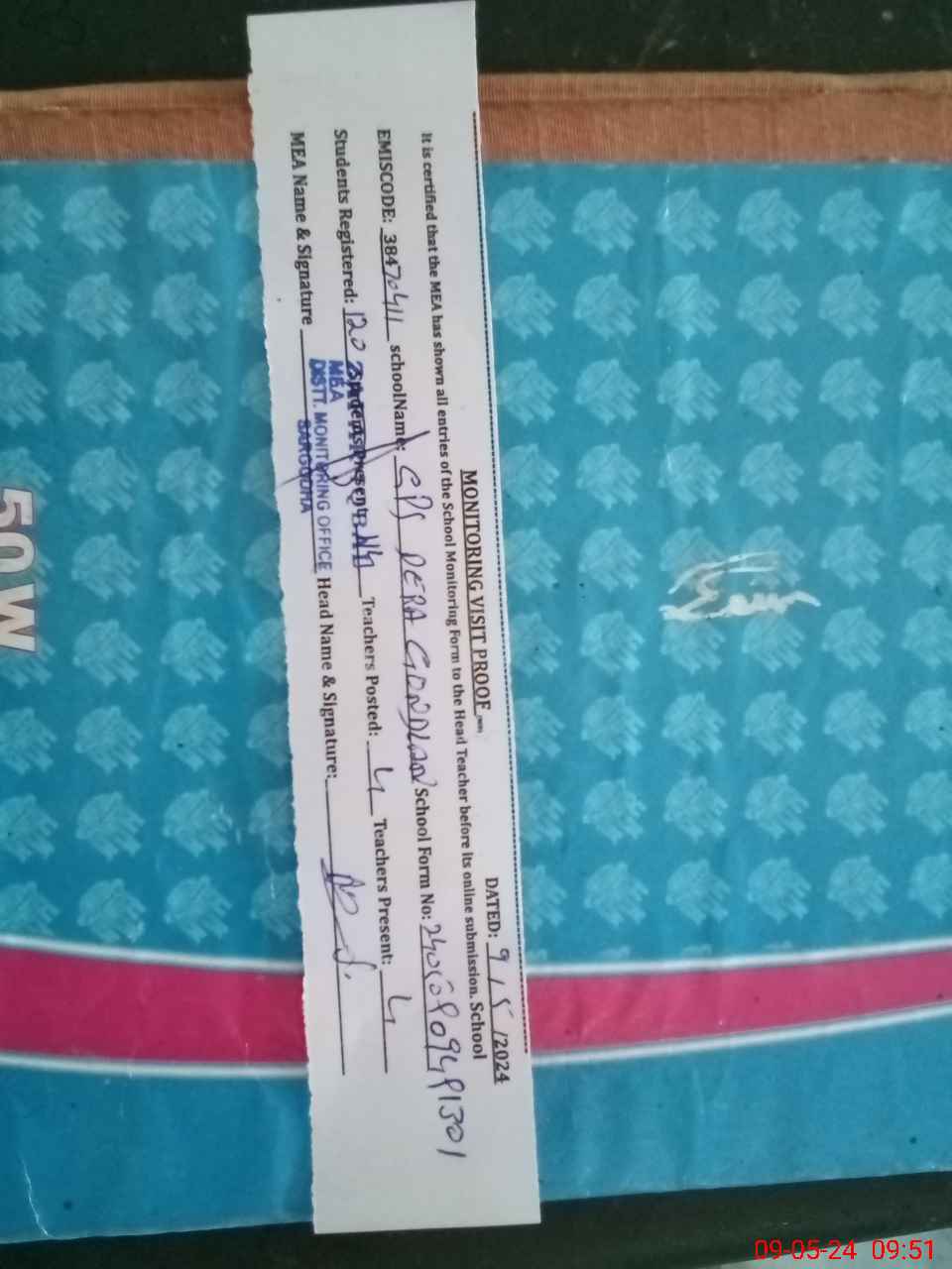 | EMIS Code: 38470411 | Name of School: GPS DERA GONDLAN | |||