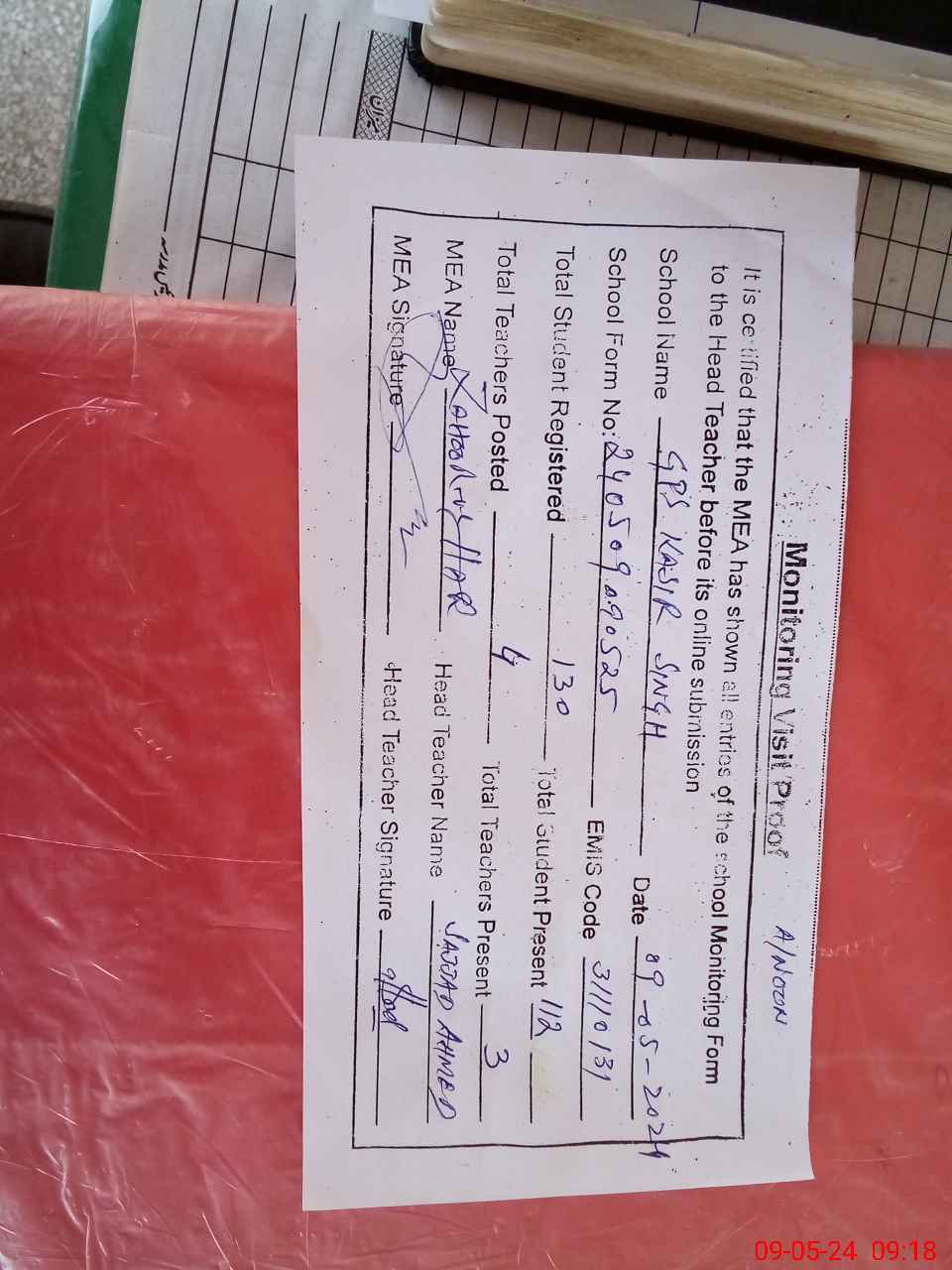 | EMIS Code: 31110131 | Name of School: GPS KASIR SINGH | |||
