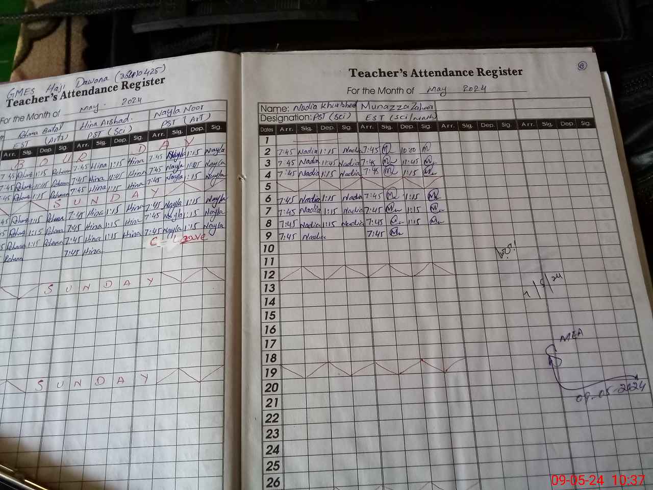 | Monitoring Date: 09-05-2024 | Start Time: 09-05-2024 09:29 AM | End Time: 09-05-2024 10:43 AM | Name of MEA: Sa**** Ah**** | |