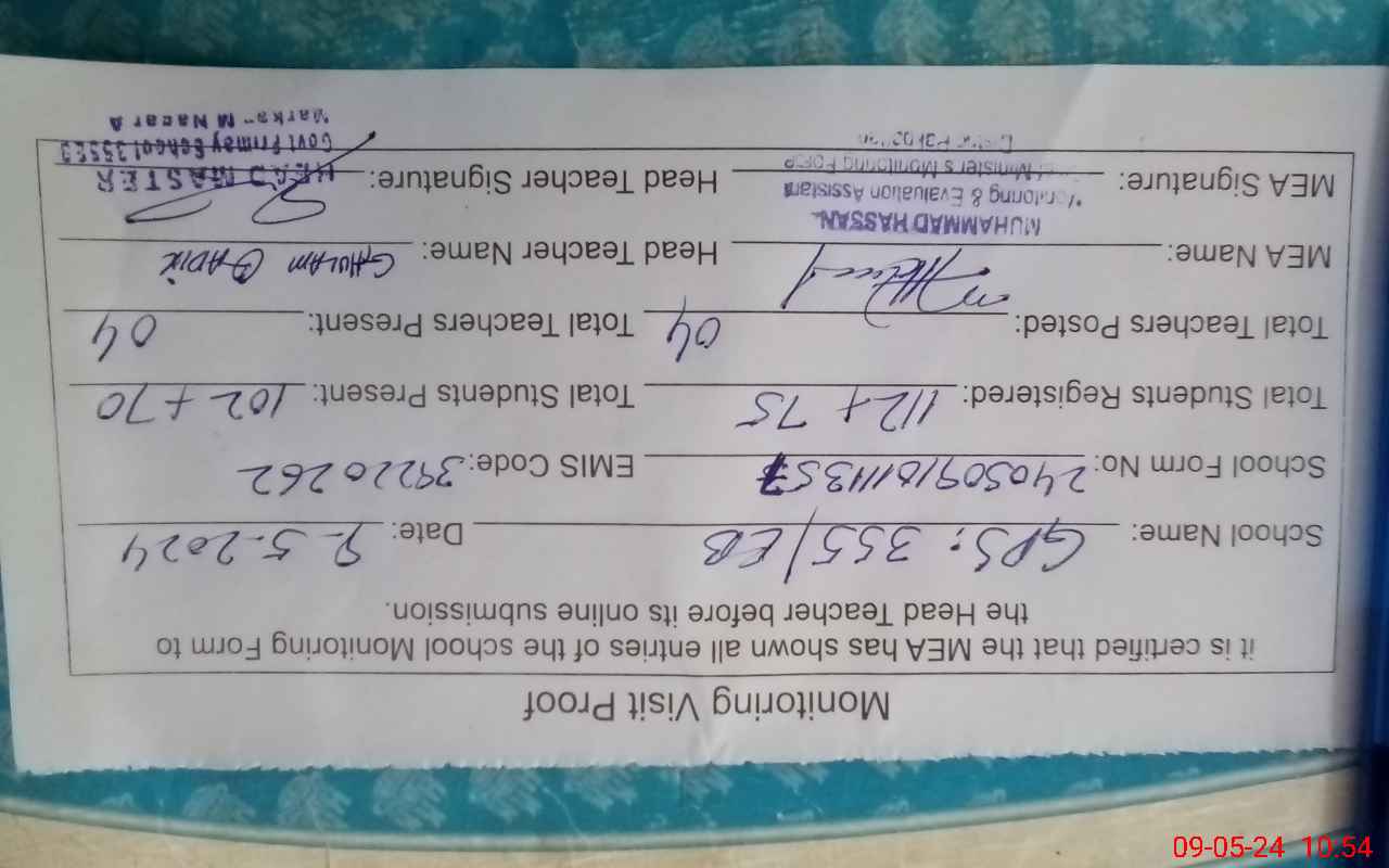 | EMIS Code: 39220262 | Name of School: GPS 355 EB P.O 351 EB | |||