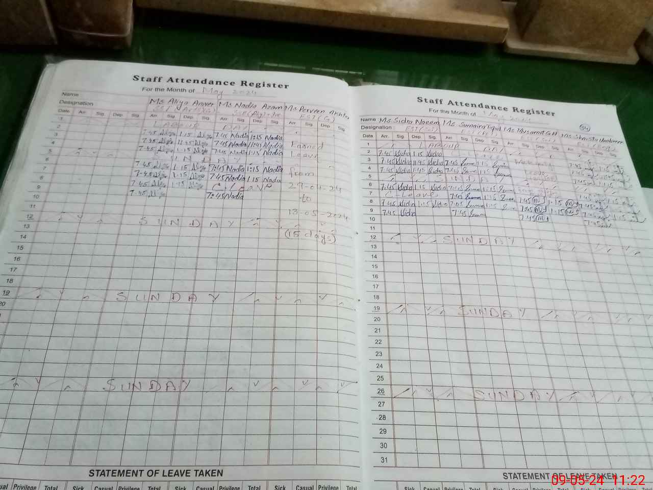 | Leave | Duty | Absent | Maternity | Medical | Ex- Pak |