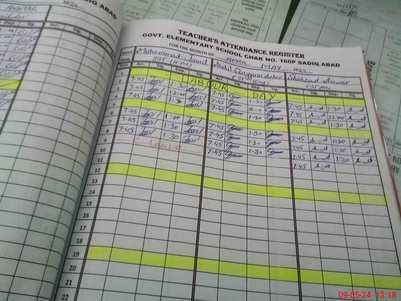 | CNIC | Full Name | Designation | R/C | Absence During Last Calender Month |