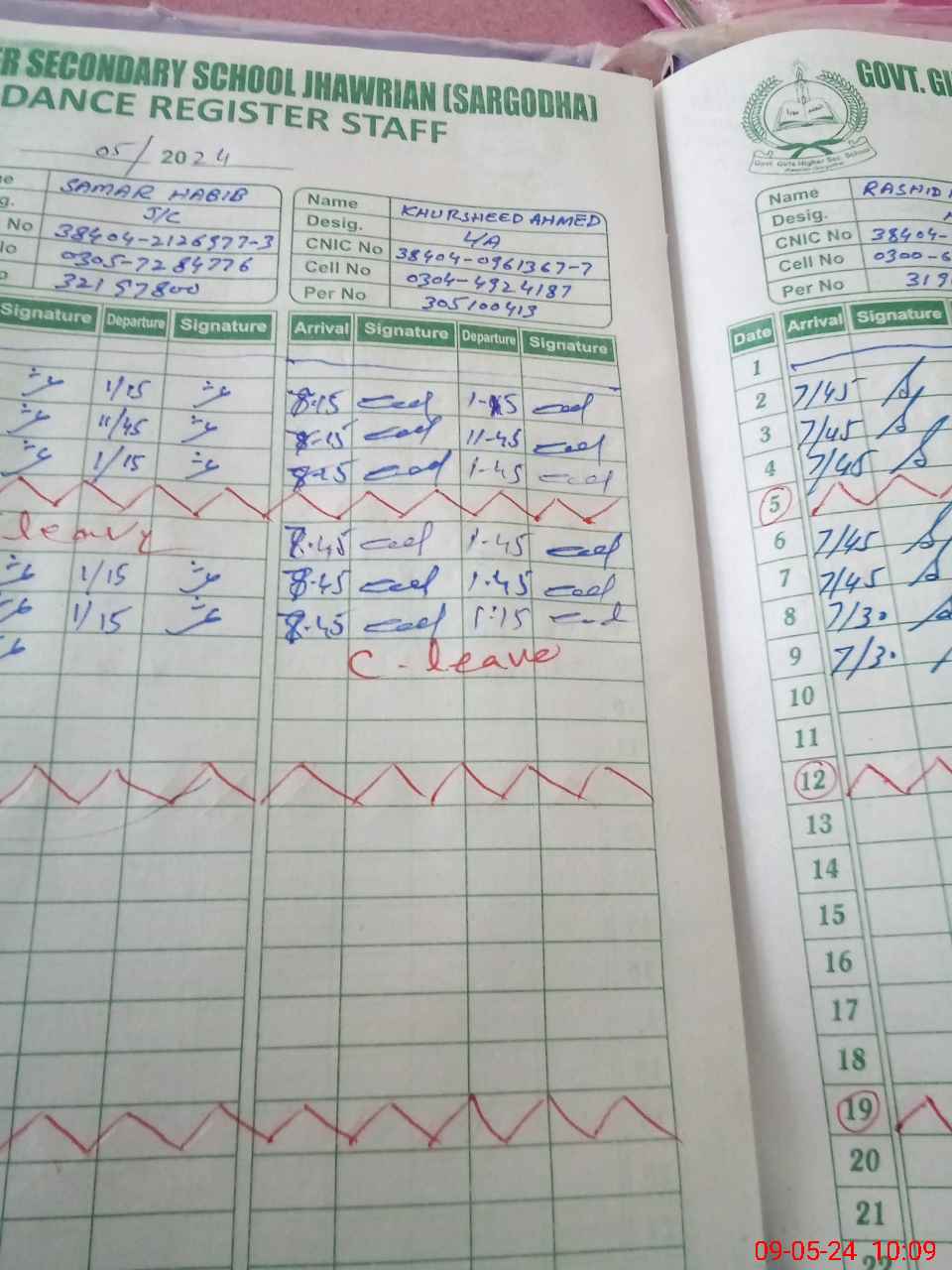 | CNIC | Full Name | Designation | R/C | Absence during last cal. month |