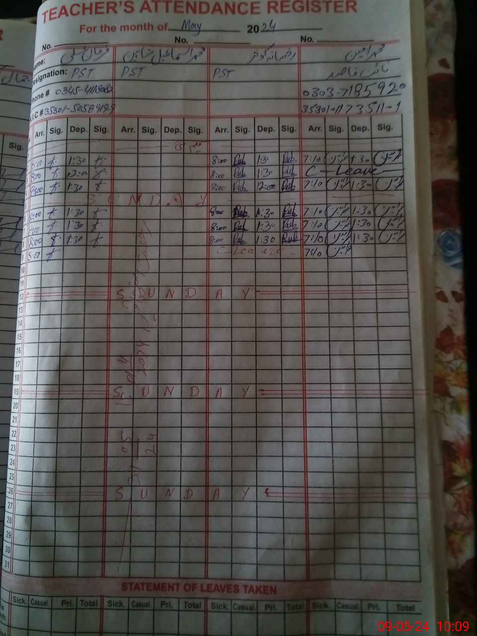 | 35**** | Sh**** Hu**** Sa**** | PST | Regular | 1 | 3 | 0 | 0 | 0 | 0 | 0 | 0 | 1 | Exam Duty |
