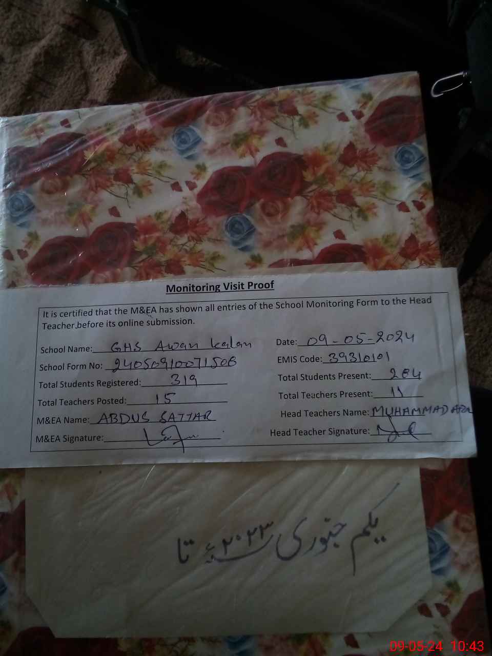 | EMIS Code: 39310101 | Name of School: GHS AWAN KALAN | |||
