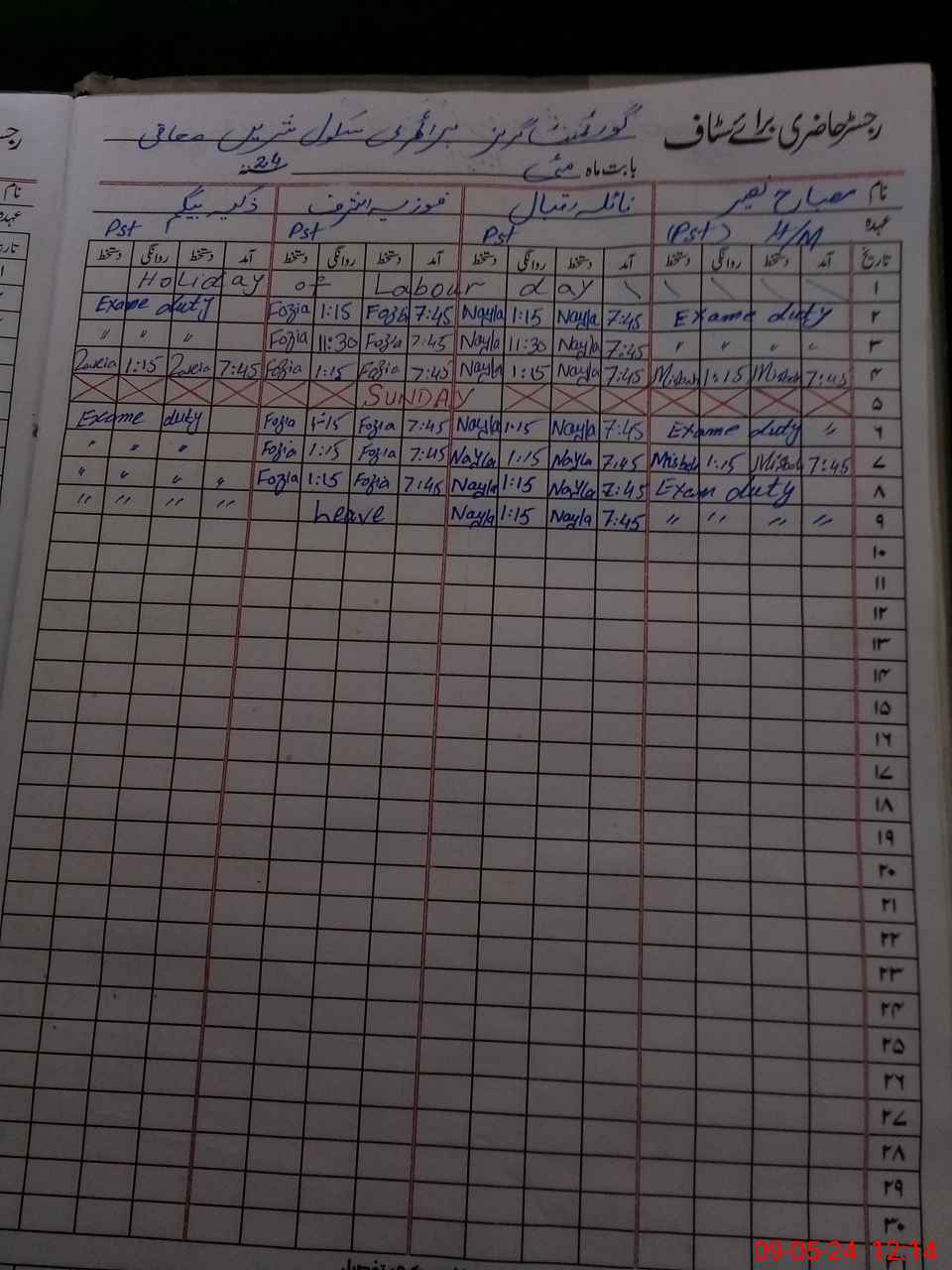 | 35**** | Za**** Be**** | 1 | 0 | 4 | 0 | 0 | 0 | 0 | 0 | 0 | 0 | Exam Duty | |