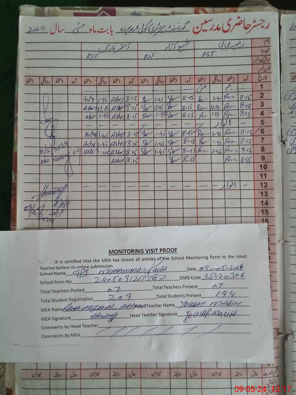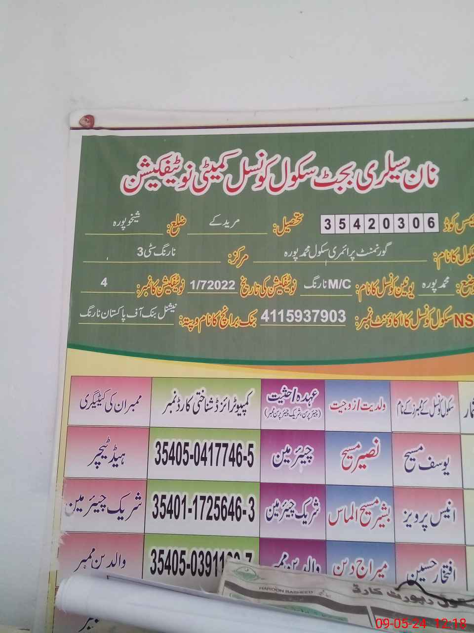 | EMIS Code: 35420306 | Name of School: GPS MUHAMMAD PURA | |||