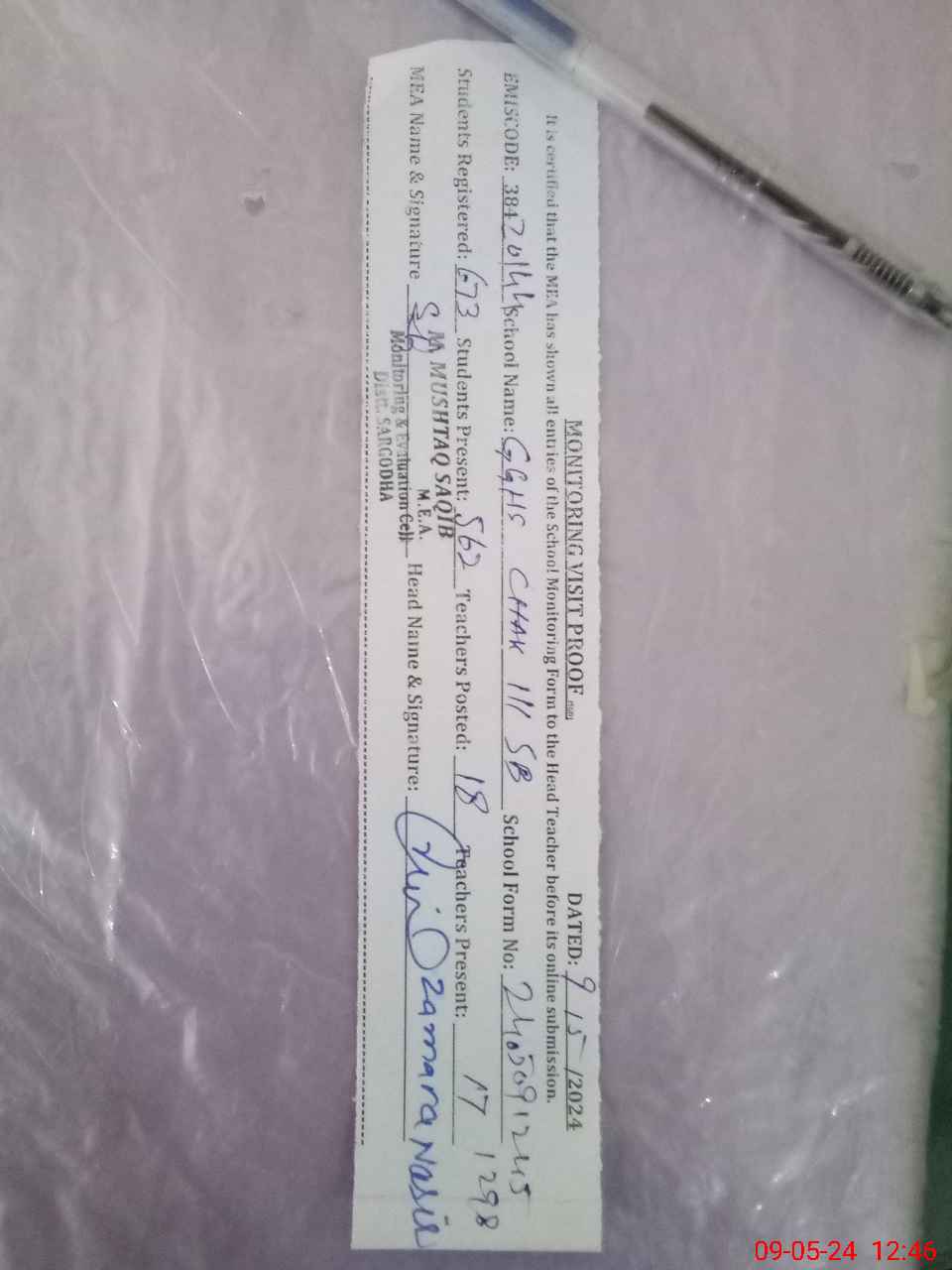 | EMIS Code: 38420144 | Name of School: GGHS CHAK NO.111 SB | |||
