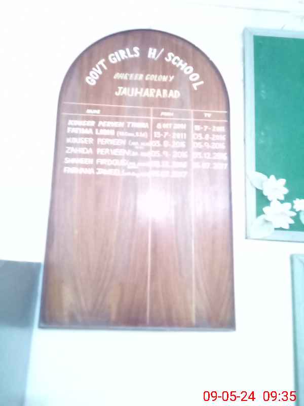 | EMIS Code: 38210960 | Name of School: GGHS GHAREEB COLONY JAUHARABAD | |||