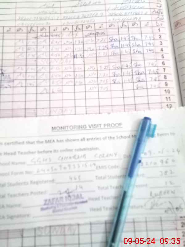 | Attendance Register | Head Teacher | MEA with School | Visit Proof |