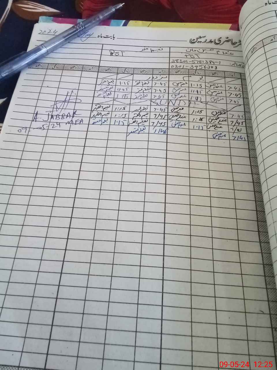 | CNIC | Full Name | Designation | R/C | Absence during last cal. month |
