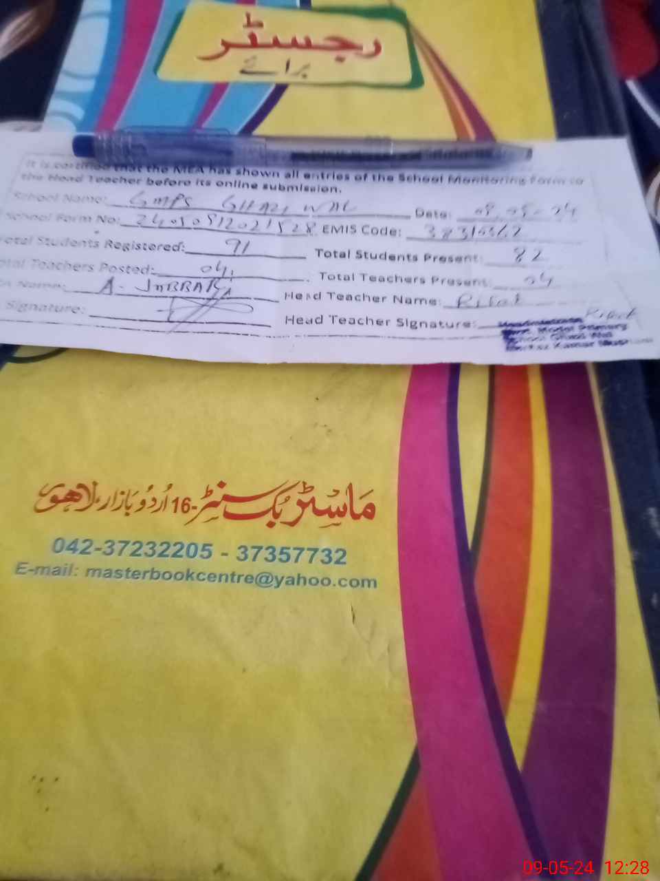 | EMIS Code: 38310362 | Name of School: GMPS GHAZI WAL | |||