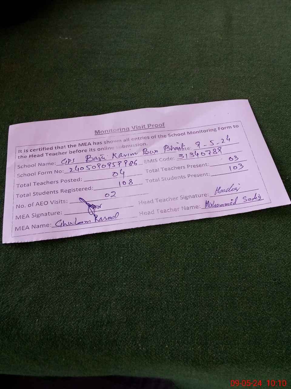 | EMIS Code: 31340789 | Name of School: GPS BASTI KARIM BAKHSH BHAIT | |||