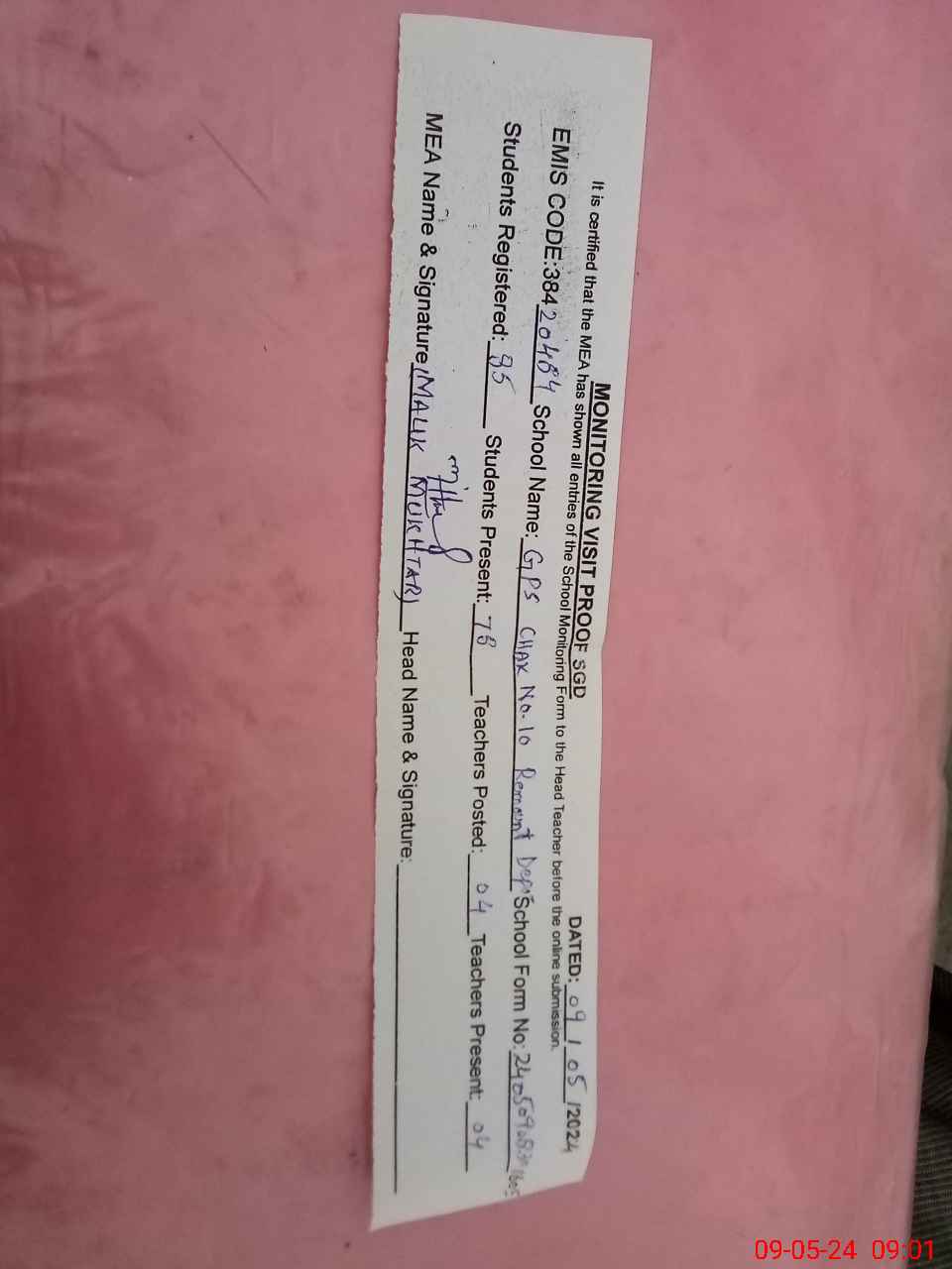 | EMIS Code: 38420484 | Name of School: GPS CHAK NO.10 REMOUNT DEPOT | |||