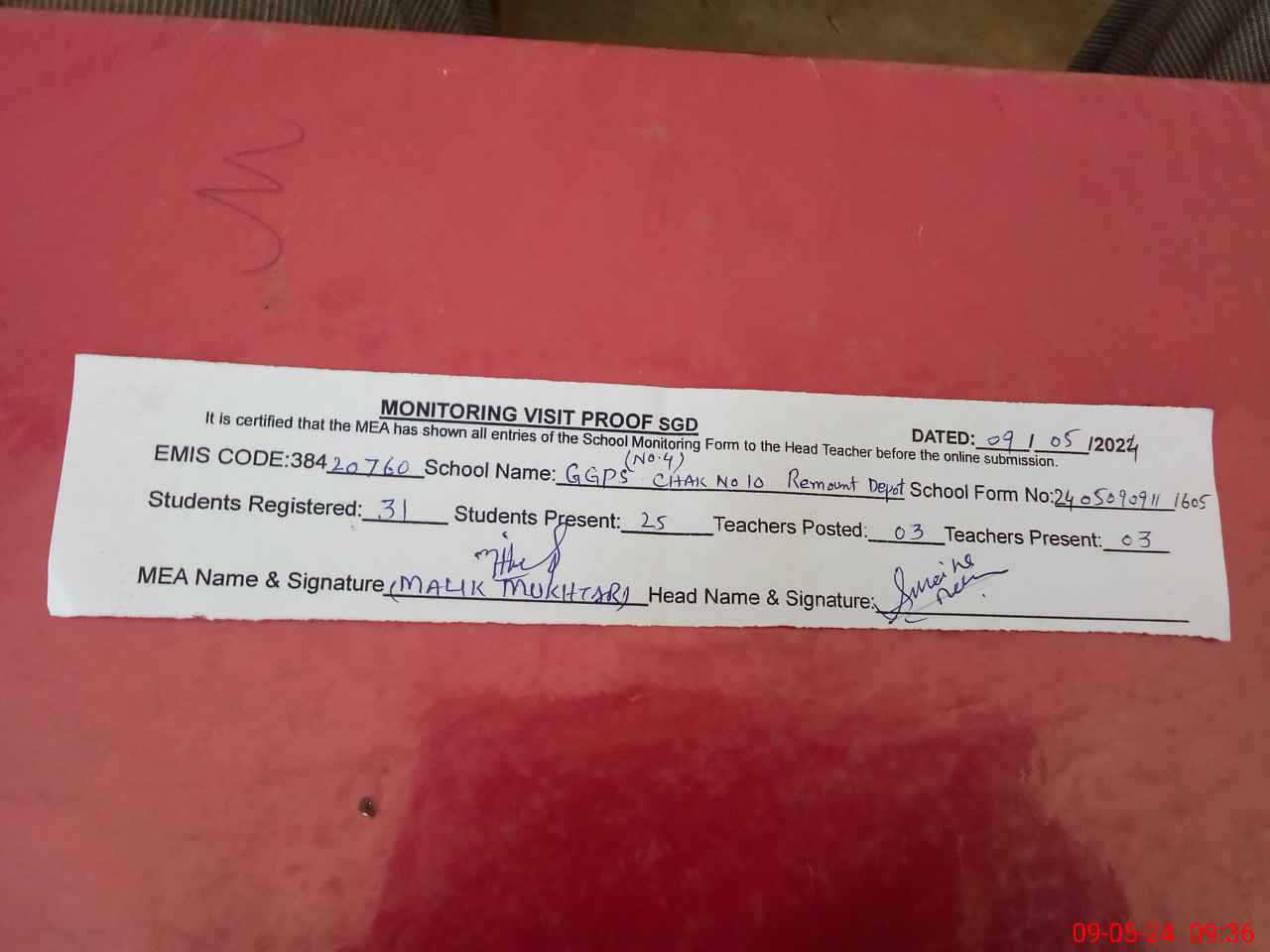 | EMIS Code: 38420760 | Name of School: GGPS NO.4 CHAK NO.10 REMOUNT DEPOT SARGODHA | |||