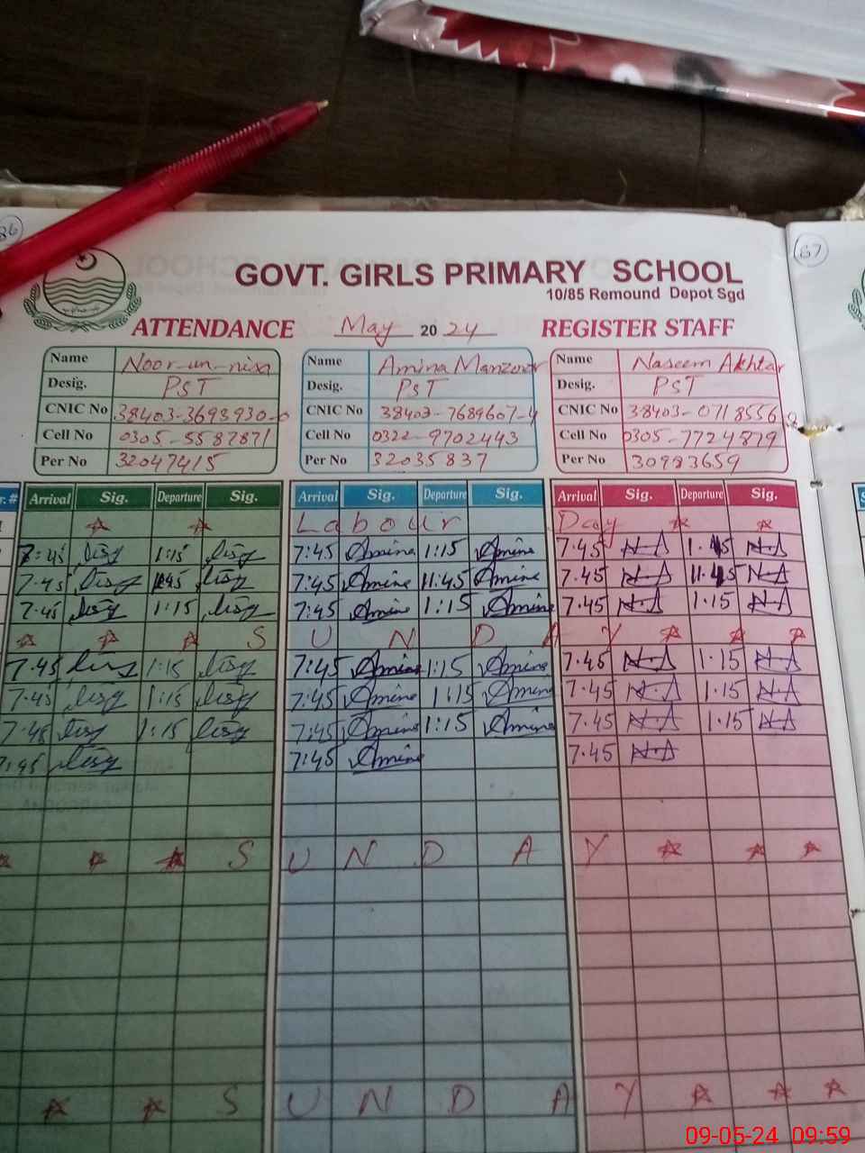 | District: SARGODHA | Tehsil: SARGODHA | Markaz: REMOUNT DEPOT - FEMALE | Level: Primary | |