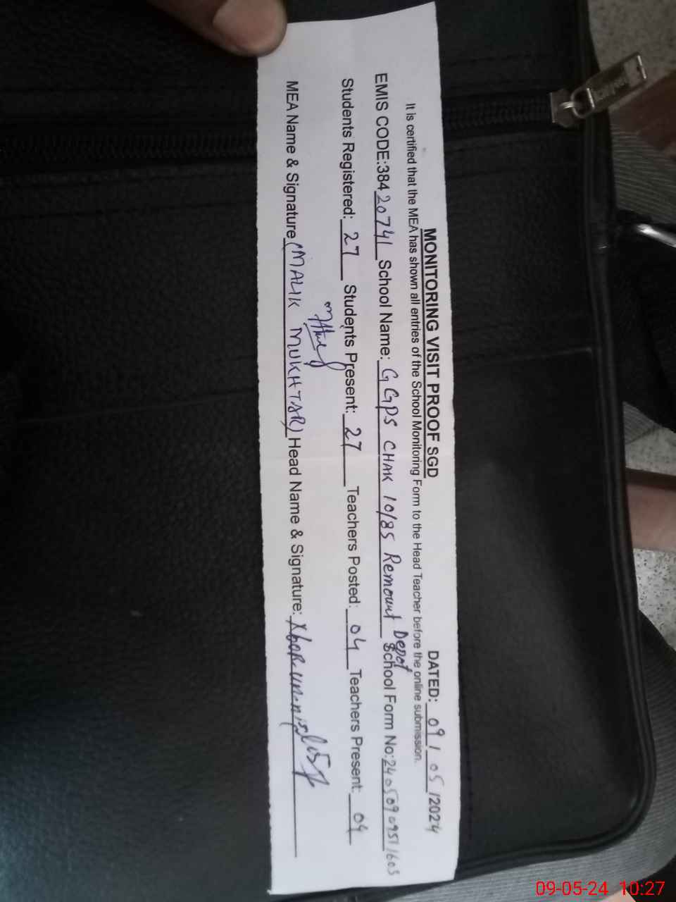 | EMIS Code: 38420741 | Name of School: GGPS CHAK NO.10/85 REMOUNT DEPOT | |||