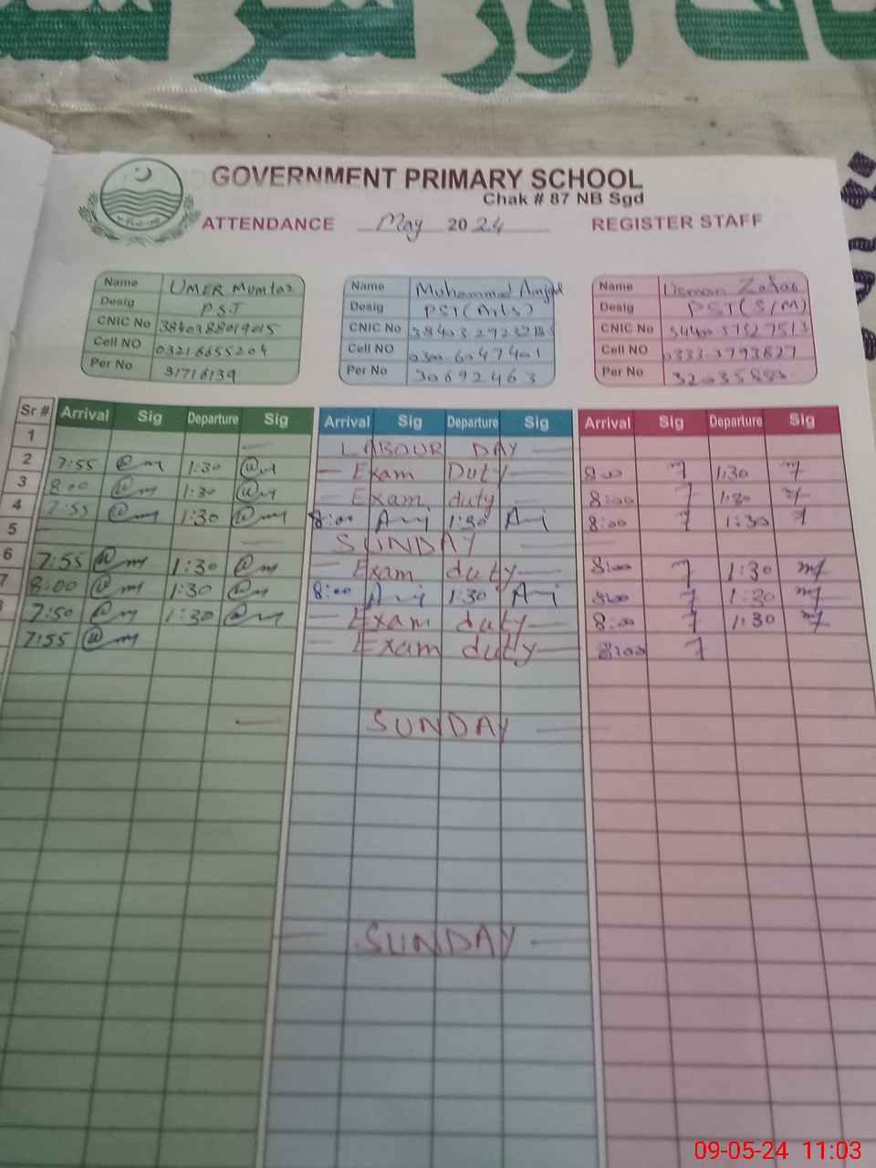 | Name: Um**** Mu**** Designation: (School Headmaster's/Headmistress's) PST Phone/Cell Number: 03**** |