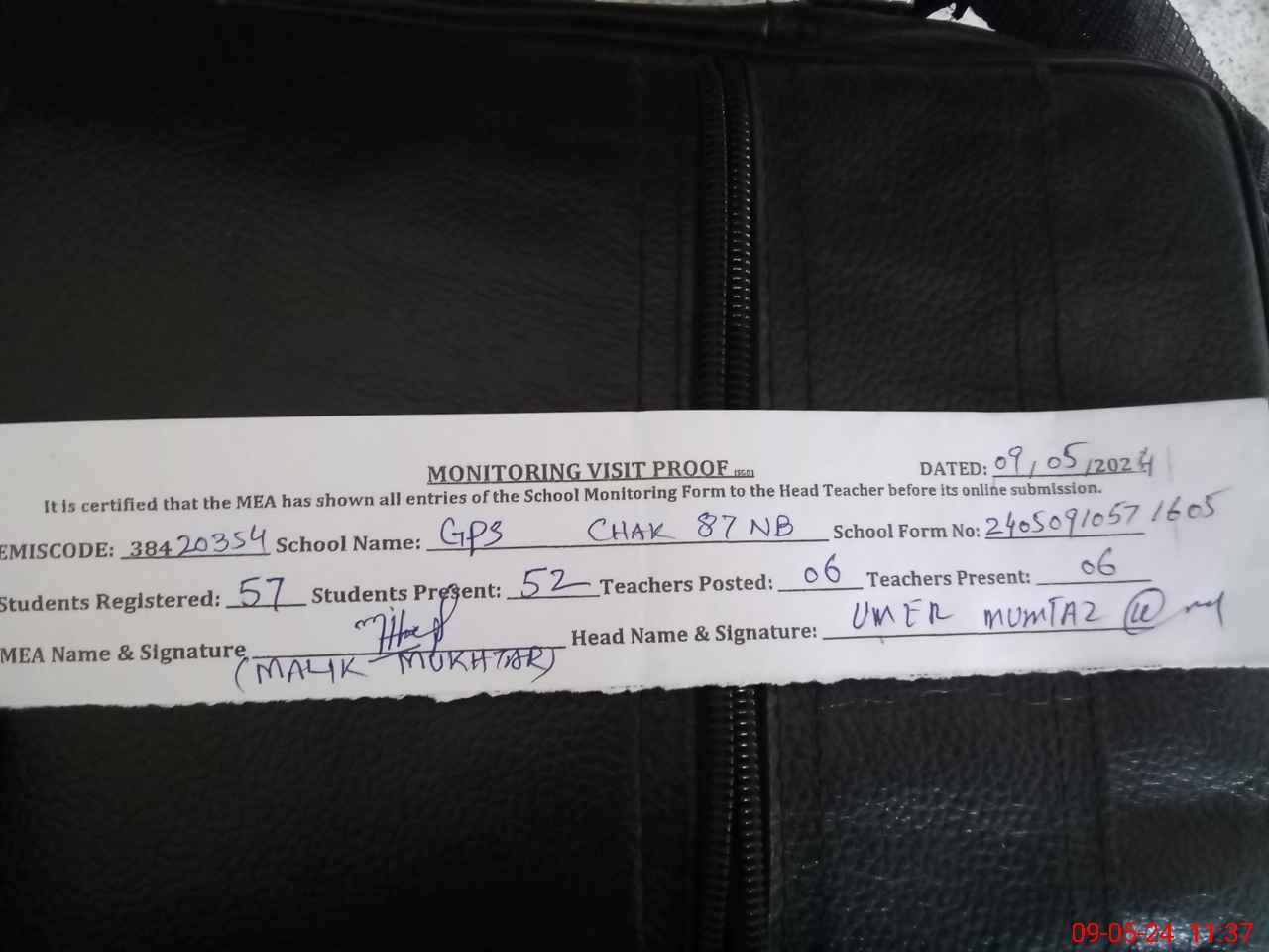 | EMIS Code: 38420354 | Name of School: GPS CHAK NO.87 NB | |||