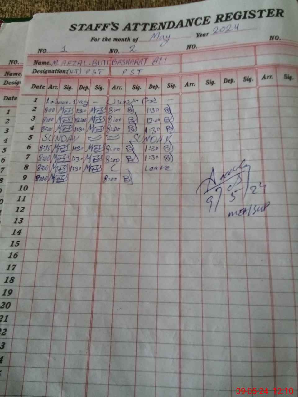 | Name: MAF**** BU**** Designation: (School Headmaster's/Headmistress's) PST Phone/Cell Number: 03**** |