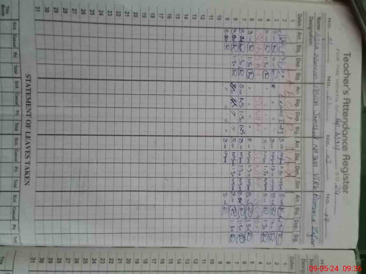 | 38**** | Ab**** Ja**** | 1 | 1 | 0 | 0 | 0 | 0 | 0 | 0 | 0 | 0 | 0 | Exam Duty |