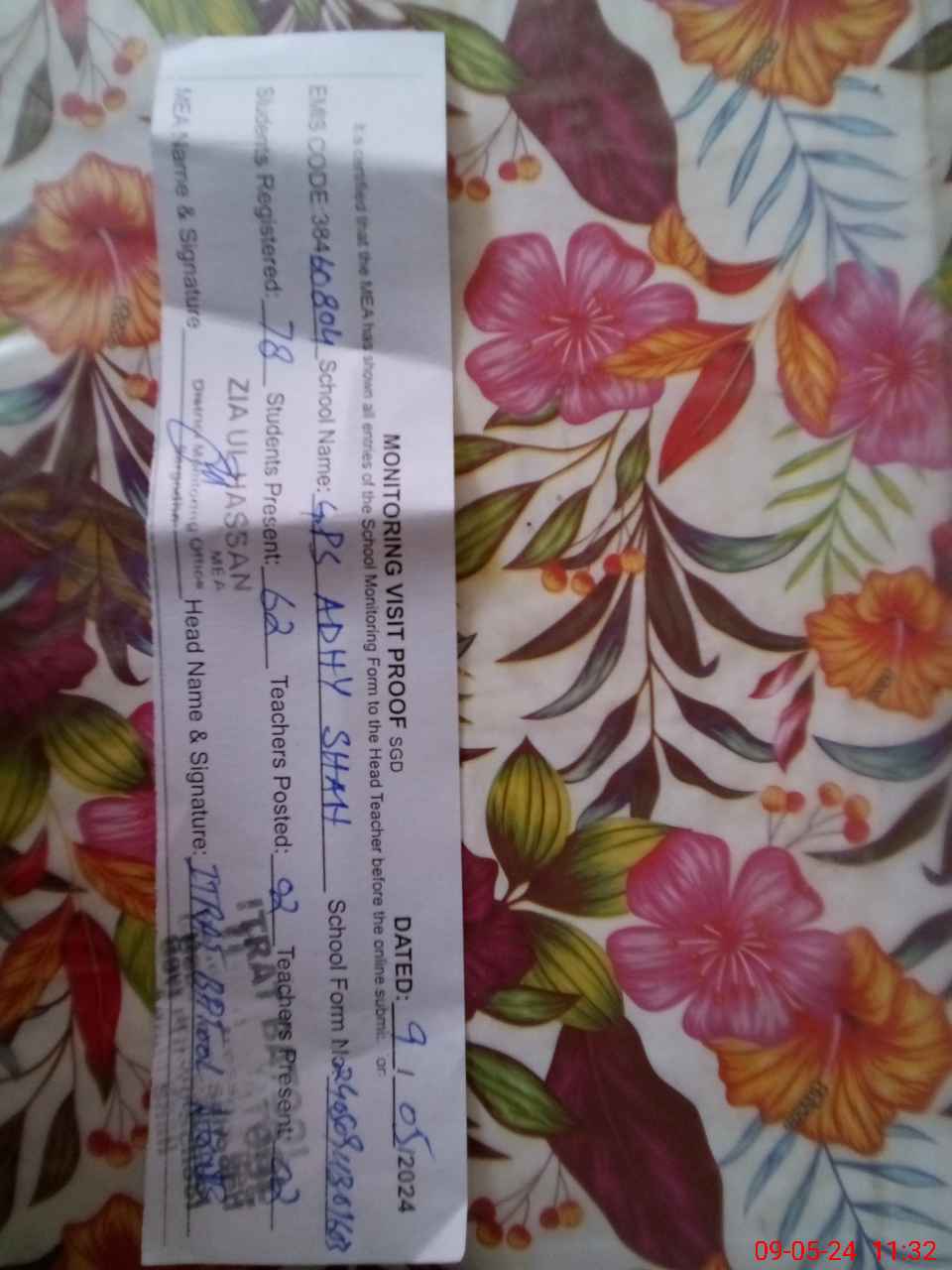 | EMIS Code: 38460804 | Name of School: GPS ADHAY SHAH | |||
