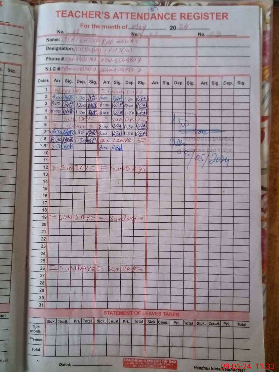| Name: IT**** BA**** Designation: (School Headmaster's/Headmistress's) PST Phone/Cell Number: 03**** |