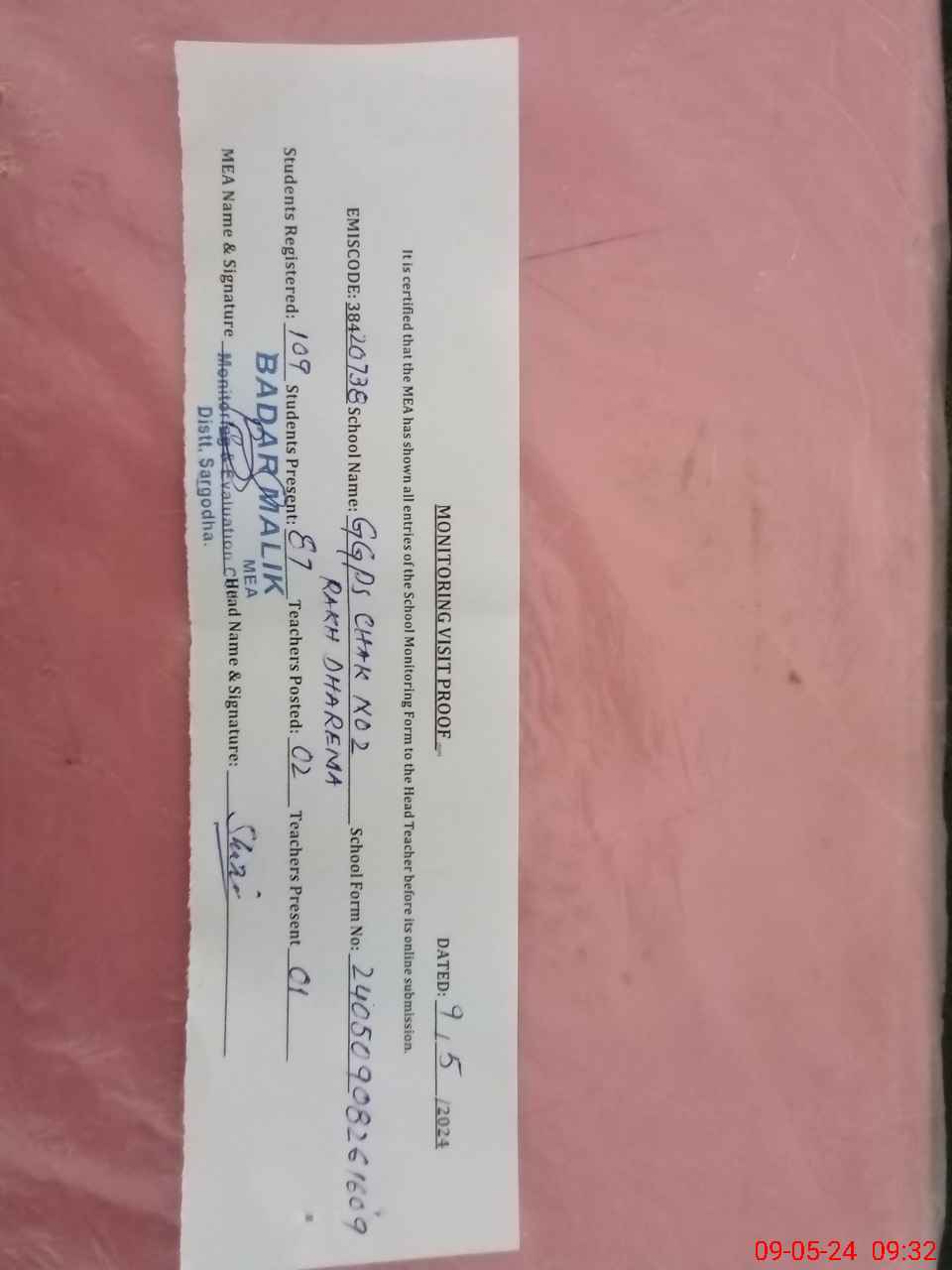 | EMIS Code: 38420738 | Name of School: GGPS CHAK NO.2 RAKH DHAREMA | |||