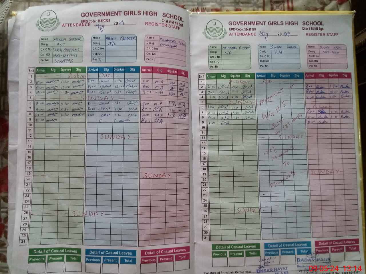 | CNIC | Full Name | Designation | R/C | Absence During Last Calender Month |