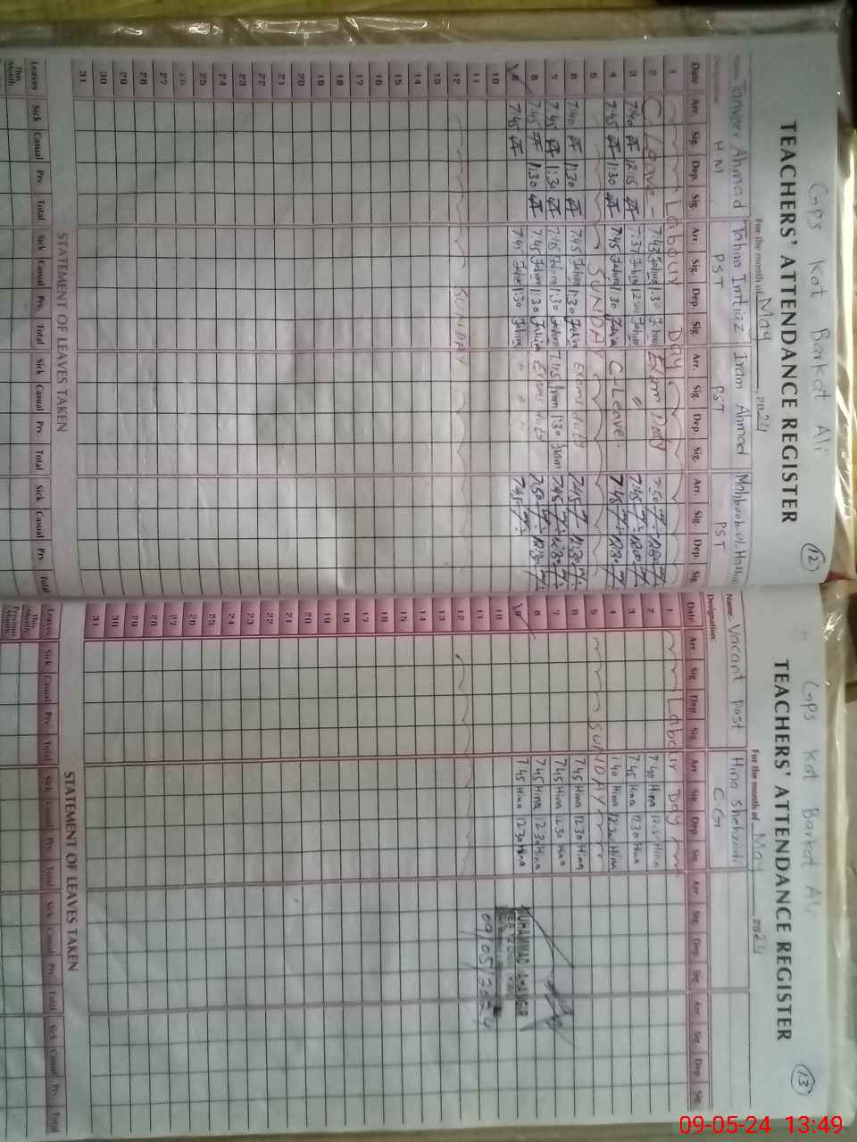 | Remarks (Use Separate Page if Required): THIS SCHOOL IS INSAF AFTERNOON SCHOOL LESSON PLANS ARE NOT AVAILABLE FORMS D4 FOR DISTRIBUTION OF BOOKS ARE NOT AVAILABLE ECE KIT IS NOT AVAILABLE IN THE ECE ROOM RANDOM CLASS KATCHI IS NOW IN CLASS THREE | |||||