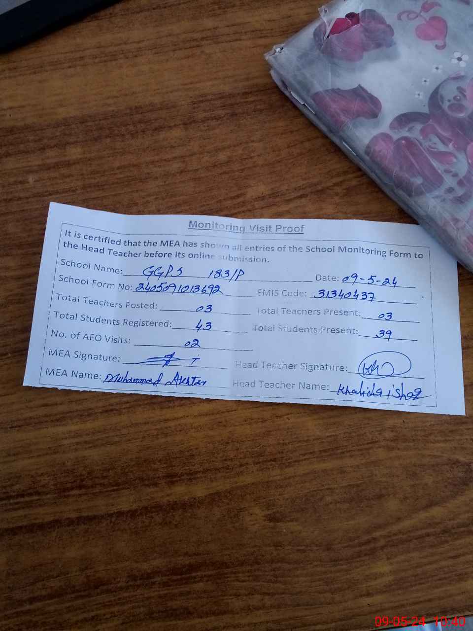 | EMIS Code: 31340437 | Name of School: GGPS 183/P | |||