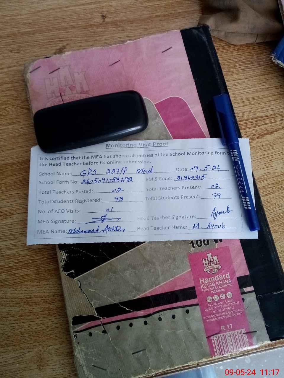 | EMIS Code: 31340315 | Name of School: GPS CHAK NO 237/P MERH | |||