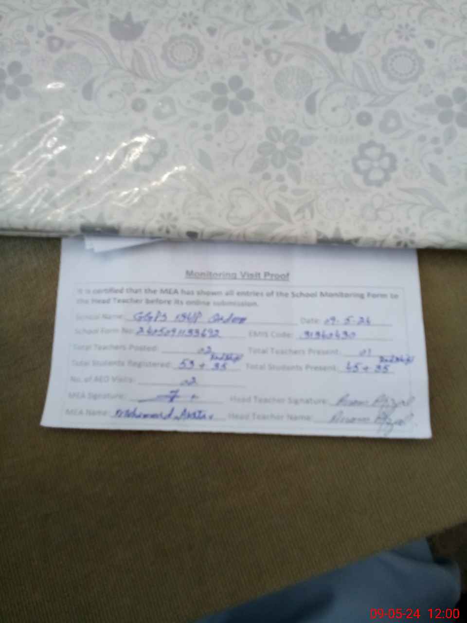 | Certified that this School was Inspected by the Undersigned MEA/DMO Today and the Information Stated Above is as Per Record. | |||||