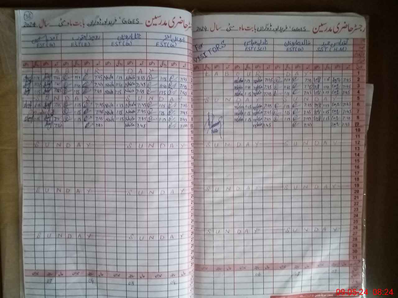 | CNIC | Full Name | Designation | R/C | Absence During Last Calender Month |