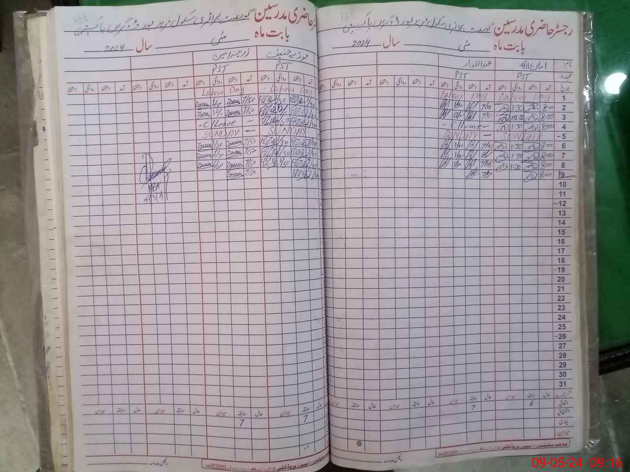 | CNIC | Full Name | Designation | R/C | Absence During Last Calender Month |