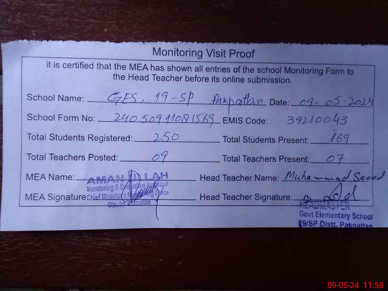 | EMIS Code: 39210043 | Name of School: GES 19/SP PAKPATTAN | |||