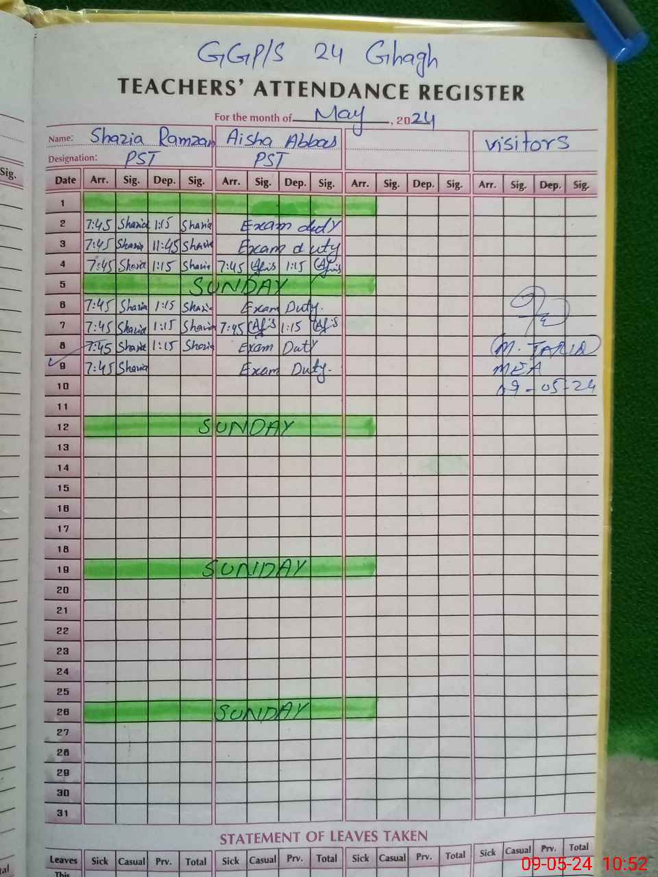| 36**** | Ai**** Ab**** | 1 | 1 | 0 | 0 | 0 | 0 | 0 | 0 | 0 | 0 | 0 | Exam Duty |