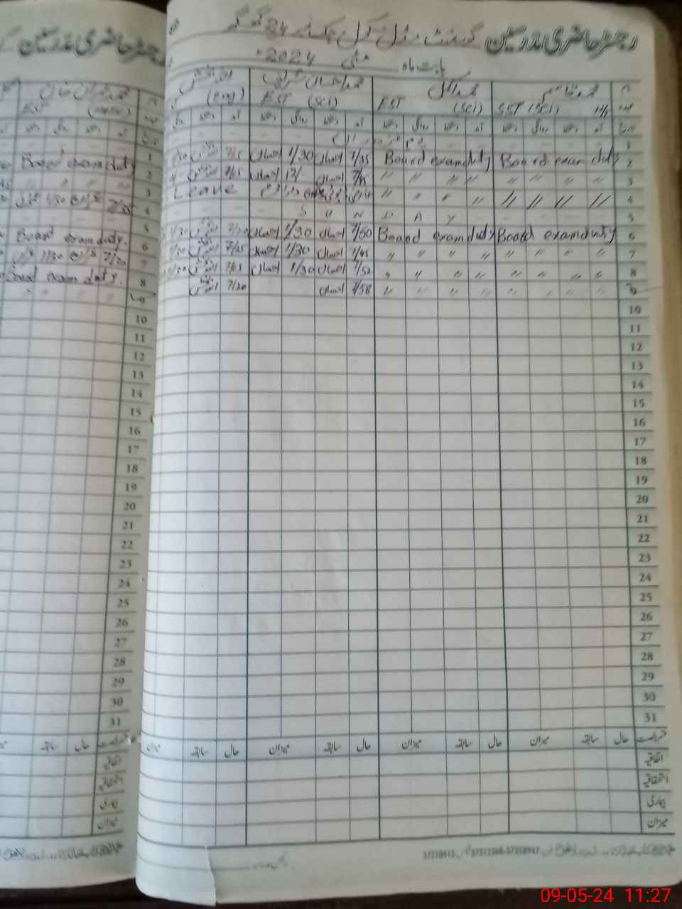 | 36**** | Mu**** Im**** Kh**** | 3 | 1 | 0 | 0 | 0 | 0 | 0 | 0 | 0 | 0 | 0 | Exam Duty |